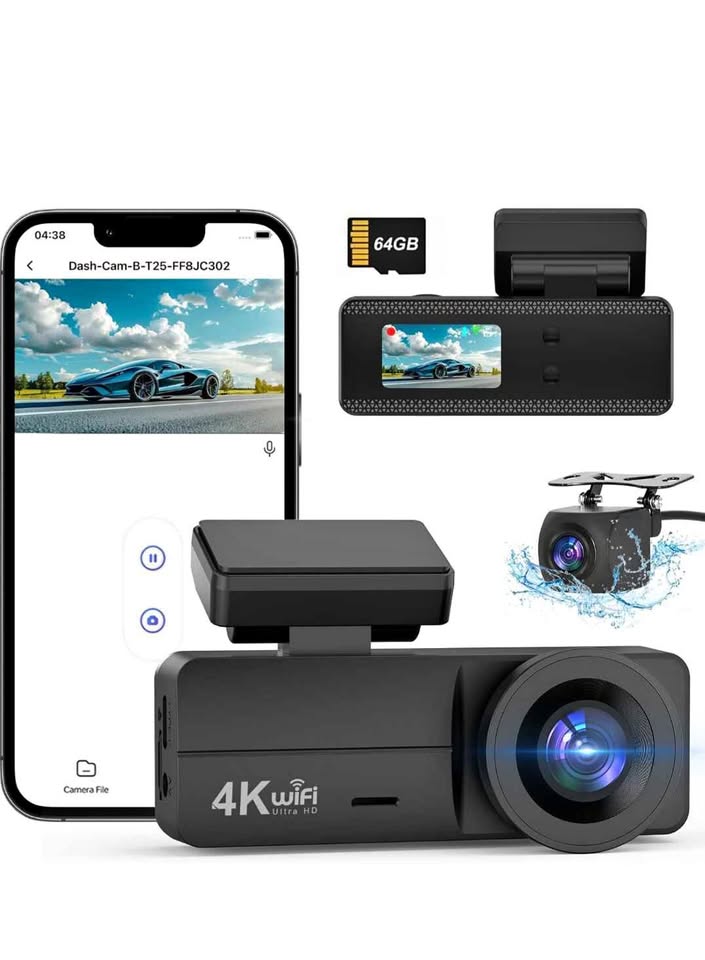 4K Dash Cam Front and Rear with WiFi & 64GB Card