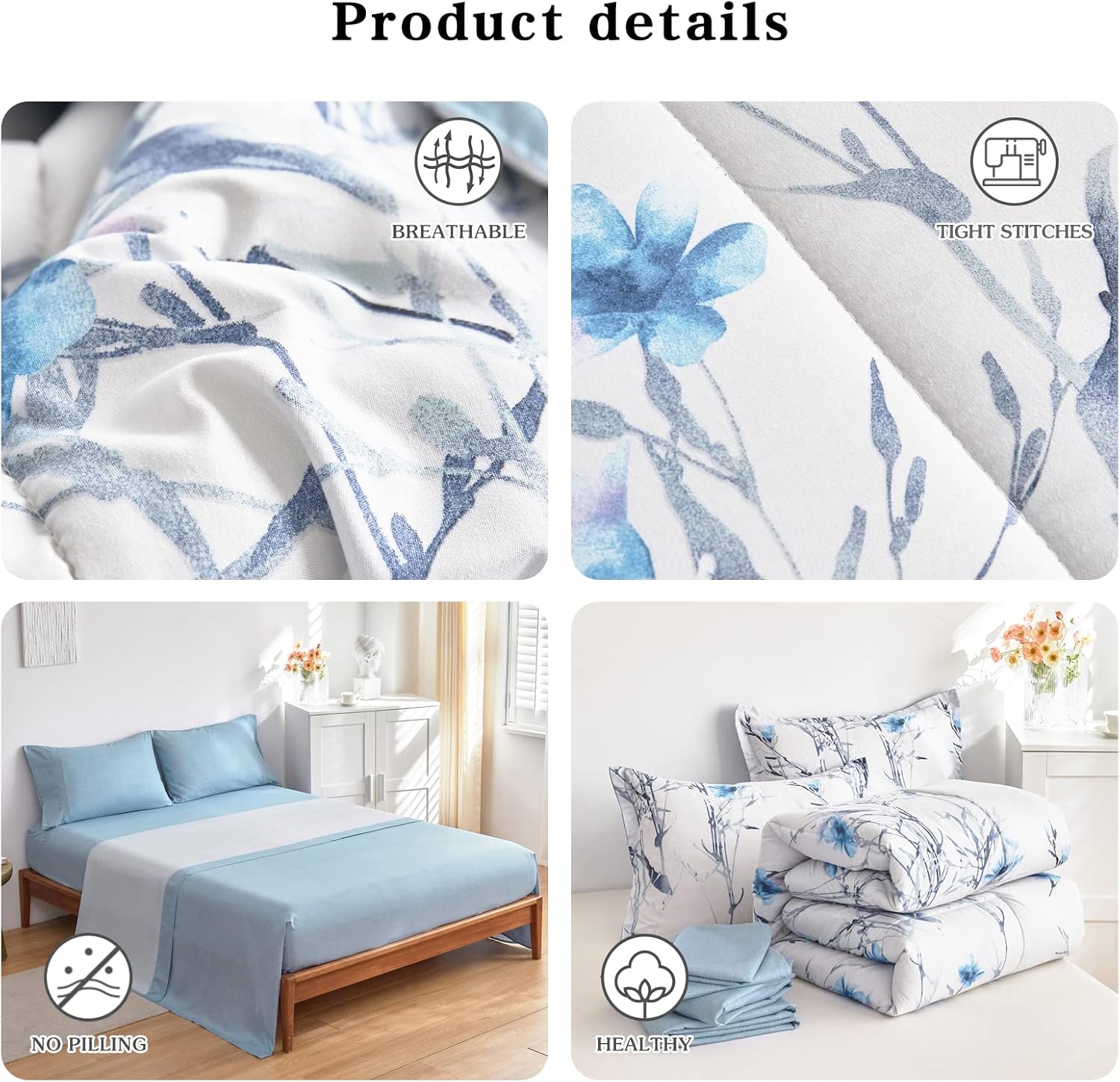Be the first to review “7 Pieces Bed in a Bag King Comforter Set with Sheets, Blue Flower Branch on White Botanical Bedding Sets for All Season (1 Comforter, 2 Pillow Shams, 1 Flat Sheet, 1 Fitted Sheet, 2 Pillowcases)” Cancel reply