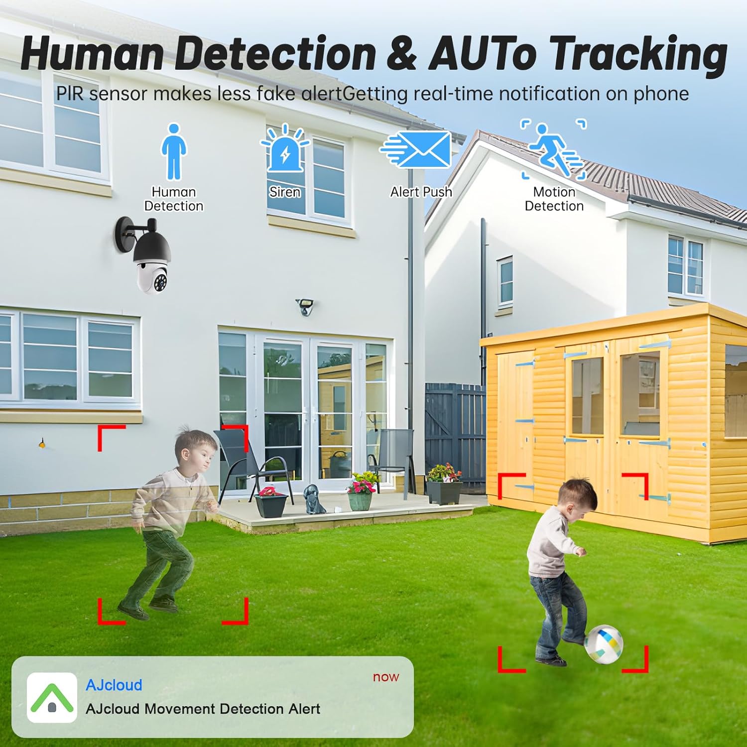 - 【Motion Detection and Human Detection Alarm】The camara de seguridad para casas uses artificial intelligence algorithms to recognize and send alerts to your connected devices as soon as it detects movement, allowing you to view live footage in a timely manner.