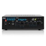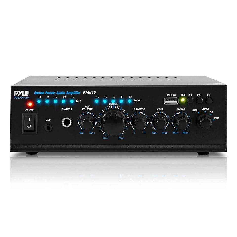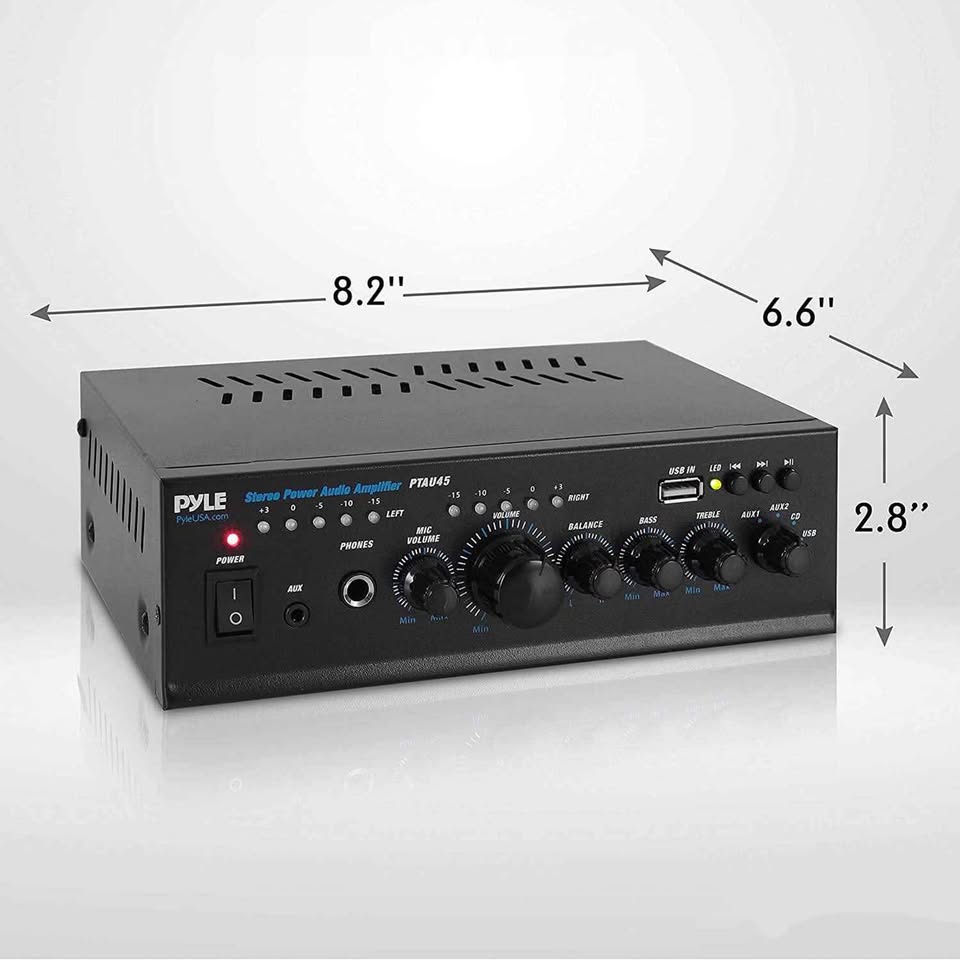 Elevate your audio experience with the Pyle PTAU55 Bluetooth Amplifier. This powerful home stereo system delivers 2 x 120 watts of max power at 4-8 ohms, offering clear, robust sound.