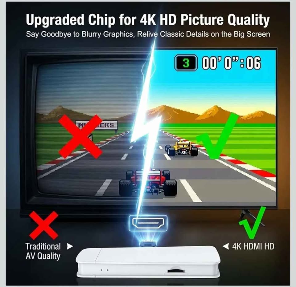 - 4K HD Output: High-definition video for crisp graphics on modern TVs, while keeping the classic feel intact.